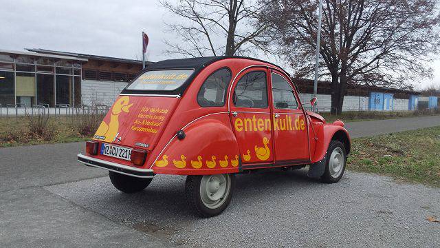 Damit unsere Kunden während der Reparatur ihrer Ente mobil sind, bieten wir gegen einen kleinen Obolus eine gepflegte Ente als Kundenersatzfahrzeug an.